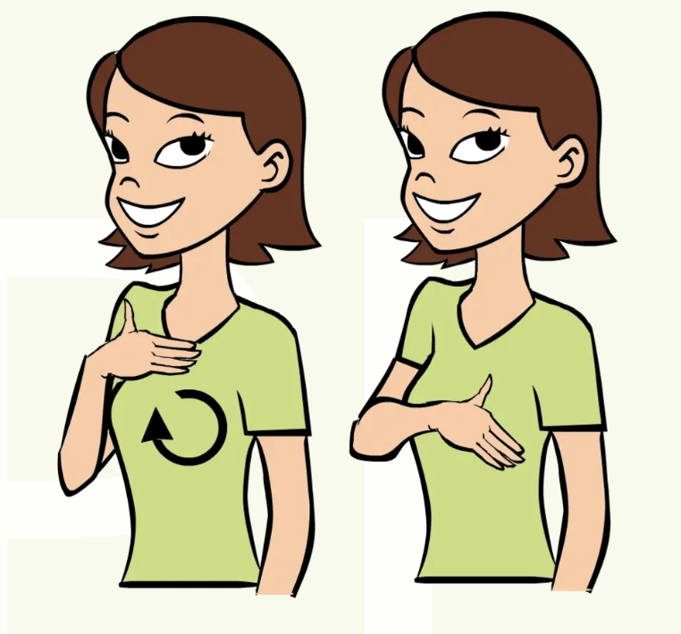 - Please – Place your palm open on your chest and rub a circle