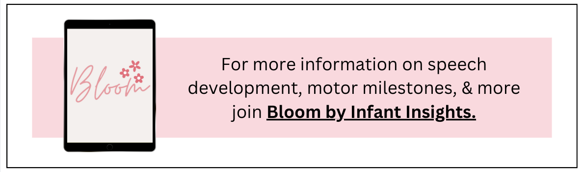Next, repeating sounds and words is SO important for speech, social, and emotional development. Repeating words, gestures, and baby sign language in appropriate settings and contexts sets your baby up for success in the very beginning in these areas. I recommend parents begin to introduce baby sign language at 6 months old, typically when starting solids. Before this age, you can label simple things around the home while completing normal tasks. You may say “OPEN” in an exciting voice while you open the fridge with your baby around. This may seem silly at first, but this repetition is laying foundations for your baby but also getting you in the mindset to encourage learning too!